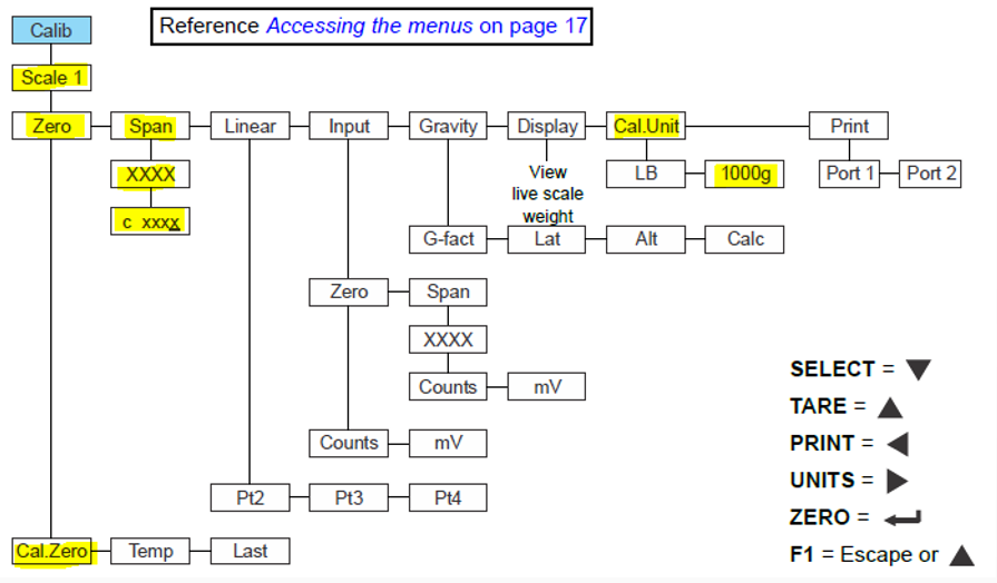 Dentro del Menú de "Calib" vamos a realizar la calibración. Primero lo calibramos en Zero-Calib. Zero y después, en la opción de "Span" con un dispositivo con un peso conocido, el cual debemos indicar.