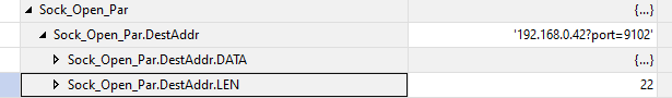 Antes de enviar y recibir información, debemos indicar la IP y el puerto del indicador ZM201, para modificarlo debemos ir al tag Sock_Open_Par.DestAddr