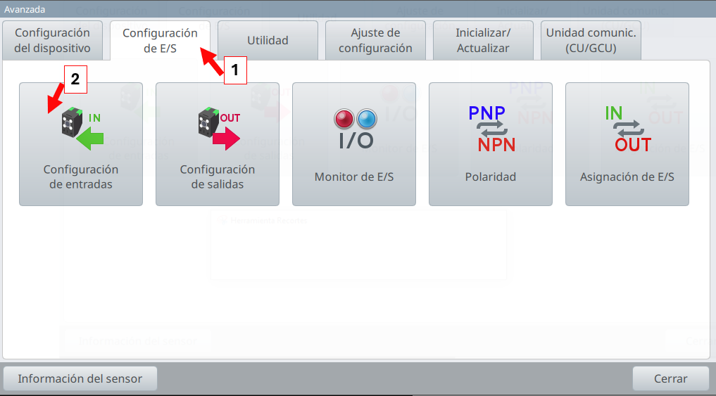 Después debemos seleccionar la pestaña de "Configuración de E/S" y presionar "Configuración de Entradas".