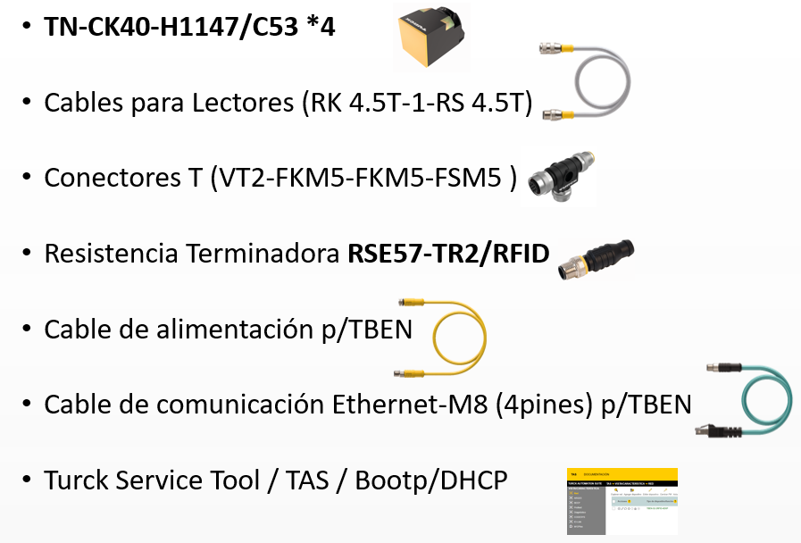 El material necesario para el conexionado de la red RFID Bus Mode es el siguiente: